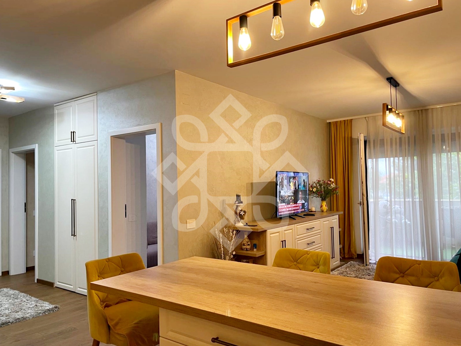 The apartment is detached, located on the ground floor of a new building and has a usable area of ​​64 square meters, respectively a built area of ​​97 square meters. It consists of: entrance hall, living room with open space kitchen, 2 bedrooms, 2 bathrooms and open balcony.
