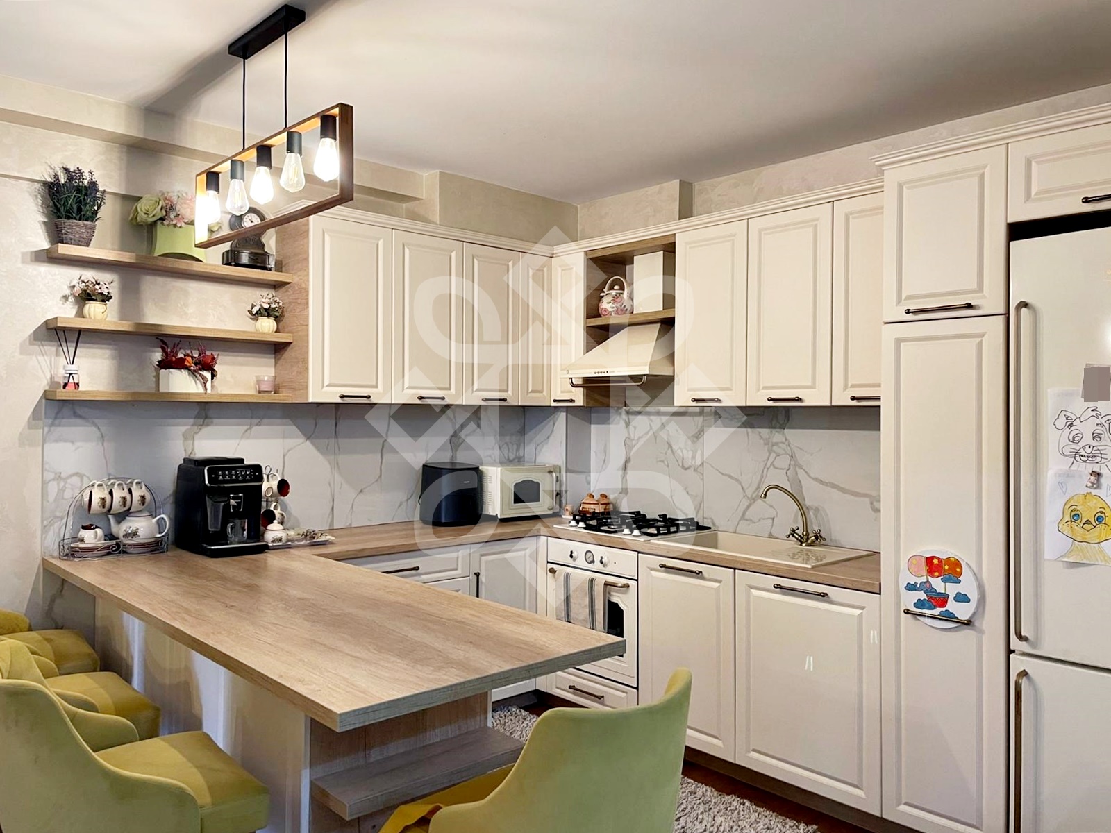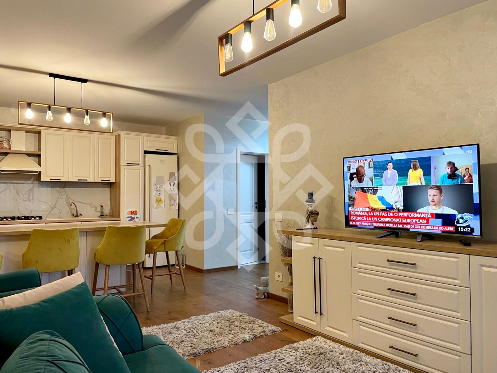 Locuinta este amenajata intr-un stil modern si este dotata cu: parchet laminat, gresie/faianta, ferestre termopan, usi de interior din MDF, usa de inalta siguranta, aer conditionat si video interfon .