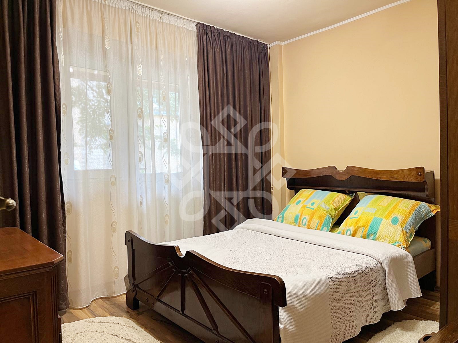 Apartamentul este amplasat la parterul unui bloc tip D, este decomandat si masoara o suprafata generoasa utila de 58 mp (a fost modificat). Se compune din hol spatios cu debara si cuier inchis, bucatarie cu loc de luat masa, living, baie cu cada, dormitor cu balcon deschis. Din balcon se face accesul in mica gradina ingrijita de proprietari. Aici sunt plantate diverse plante ornamentale si vita de vie.