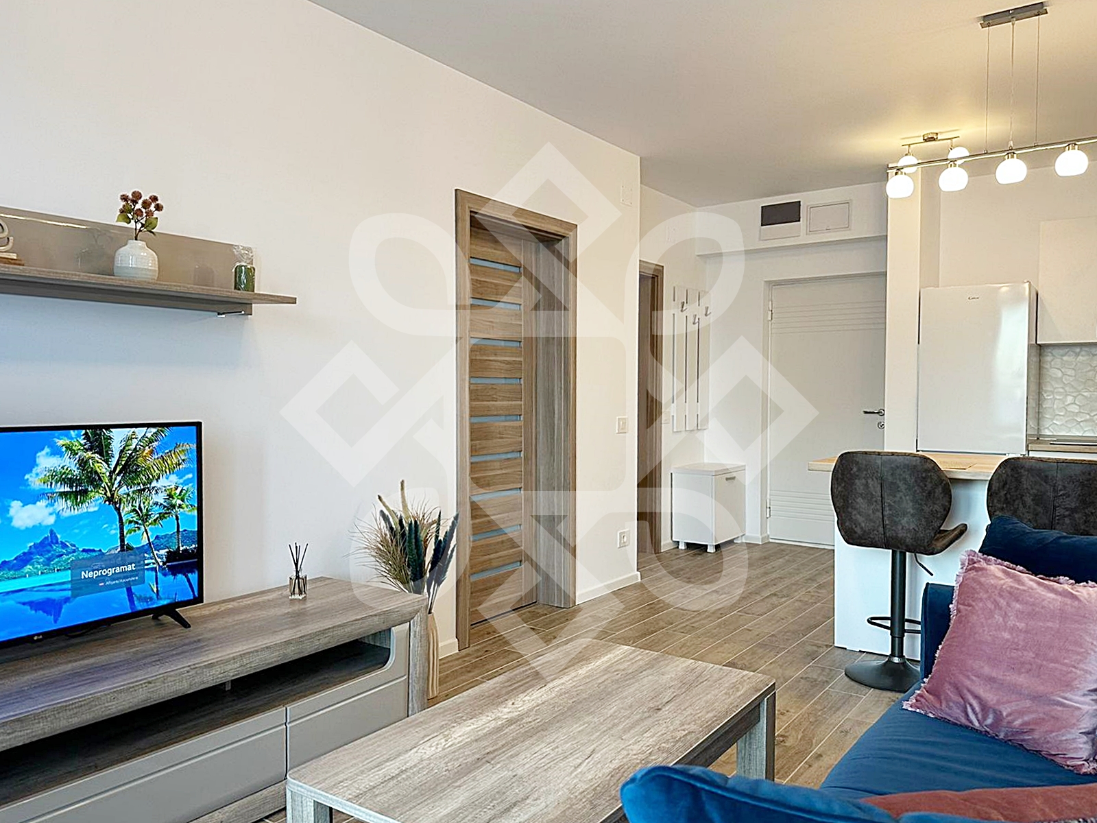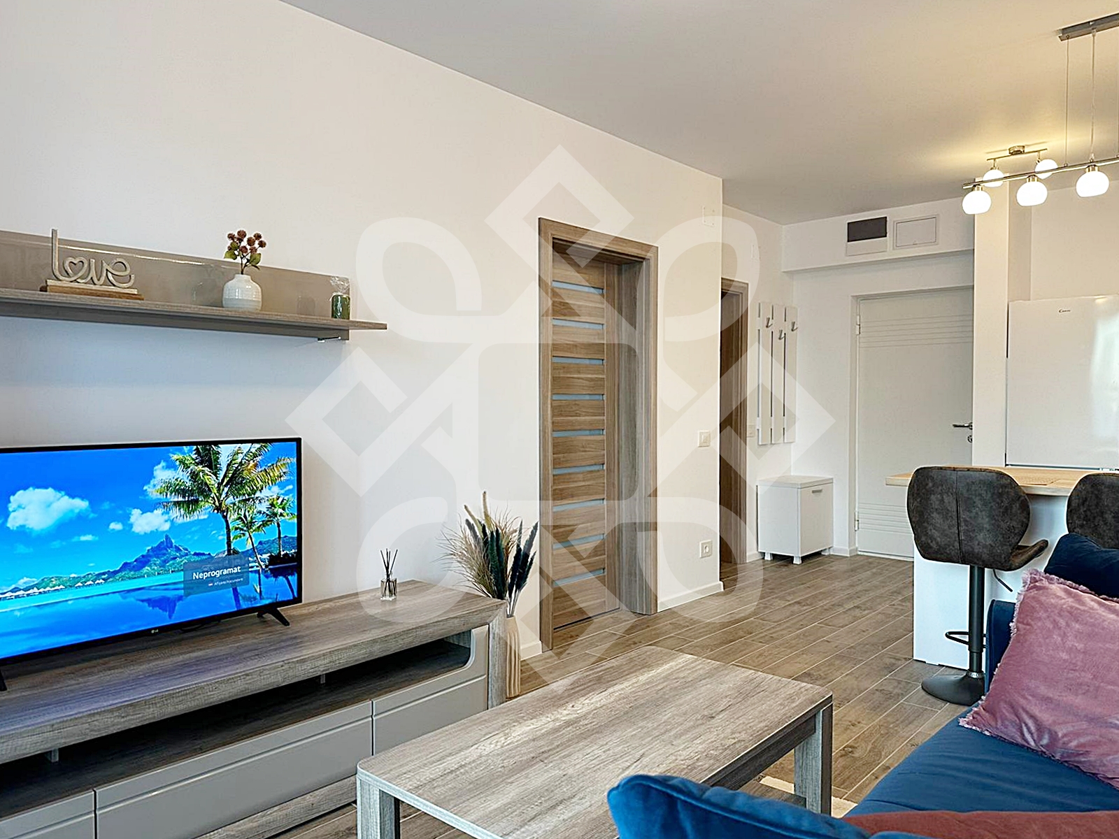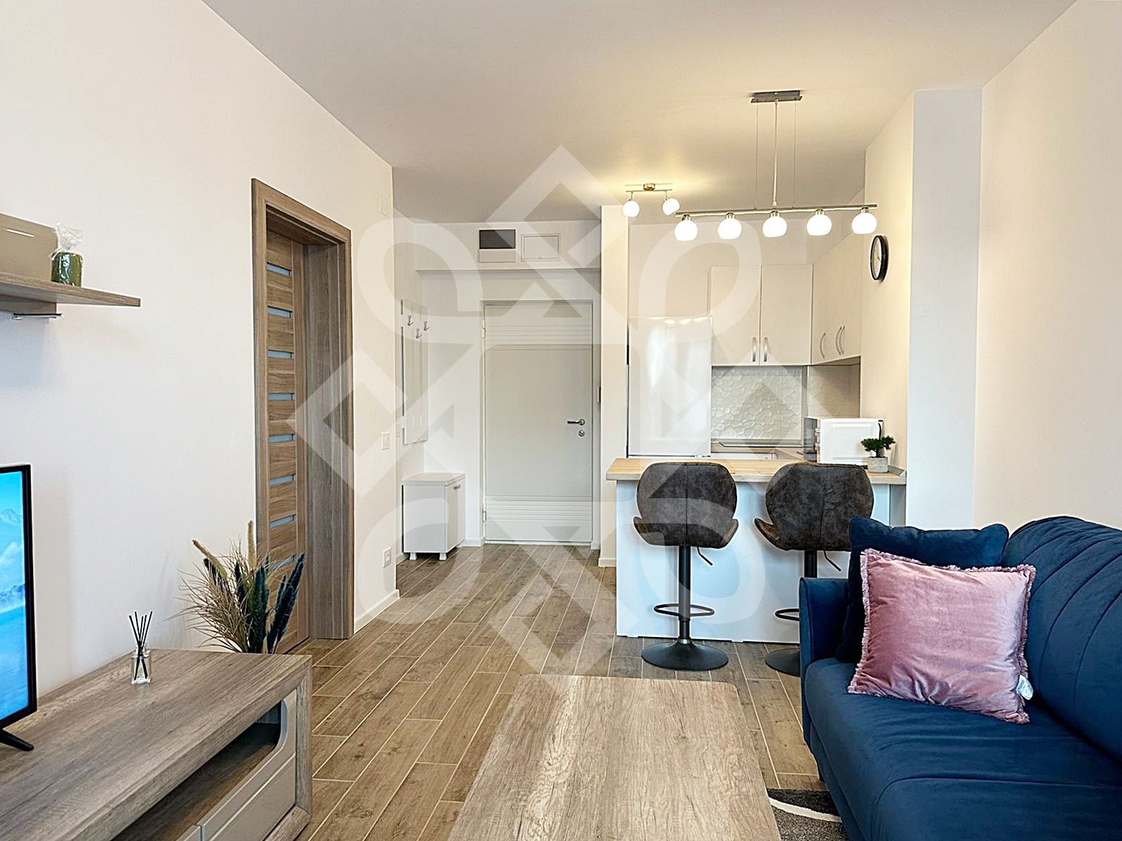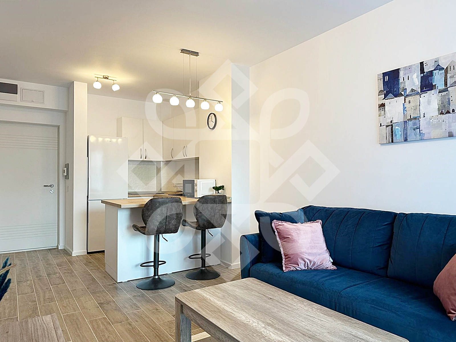 The house is modernly furnished, equipped with double-glazed windows, MDF interior doors, high-security door, custom-made furniture and quality appliances. Equipment: air conditioning, video intercom, refrigerator, electric stove, microwave oven, washing machine.