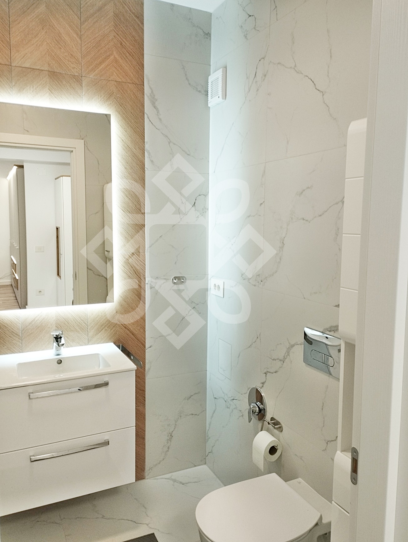 The apartment measures a usable area of ​​54sqm, located on the 7th/8th floor, in a new building with modern elevators, video surveillance and video intercom.