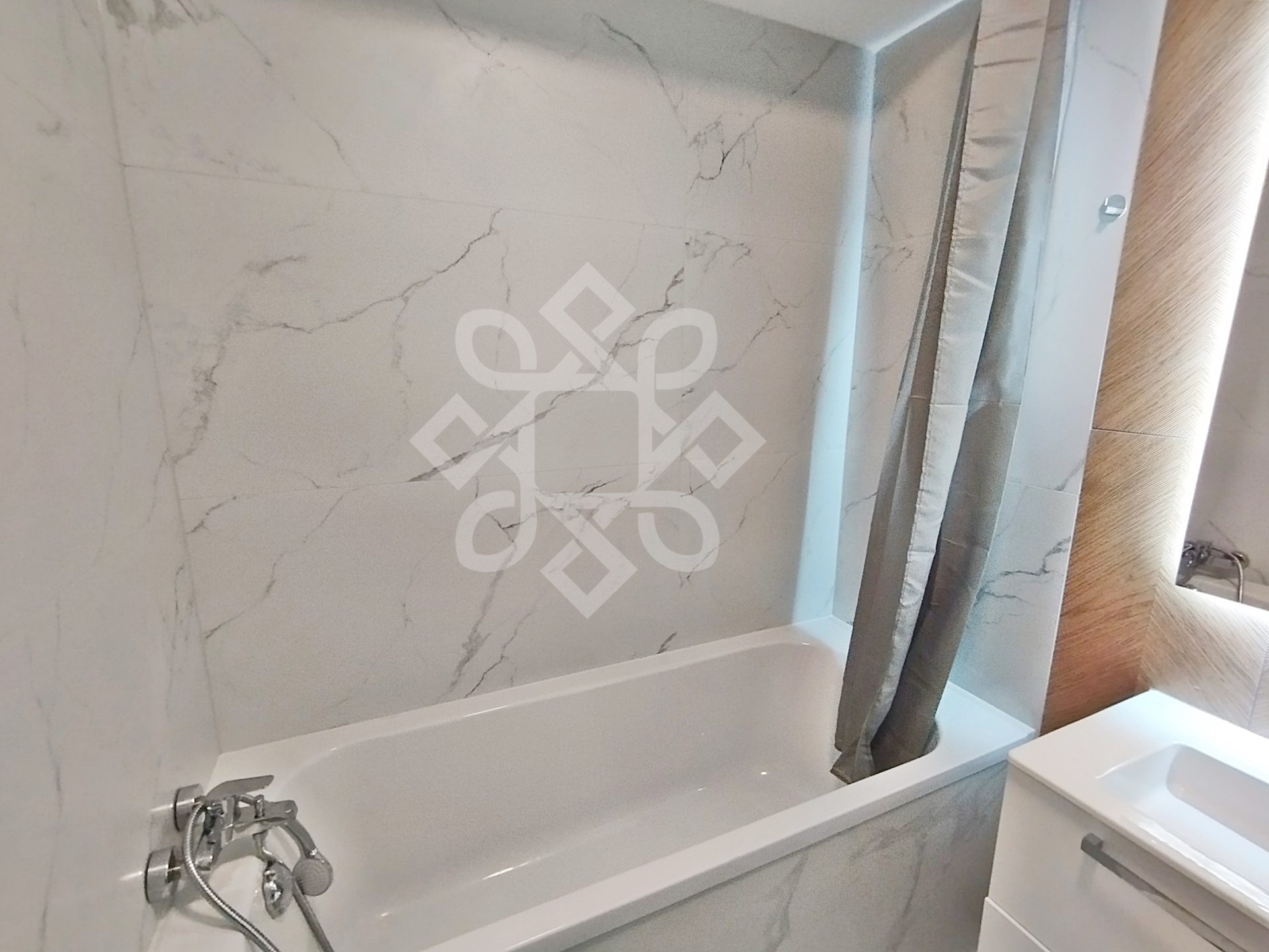 The home is detached and consists of an entrance hall, living room with exit to an open balcony, 1 bedroom, kitchen, bathroom with bathtub. The apartment is for the first rental and is modernly furnished, equipped with air conditioning, Smart TV, refrigerator, microwave, oven and electric hob, dishwasher, washing machine, vacuum cleaner. Heating is from the city’s district heating network with primary agent, installed in the floor.