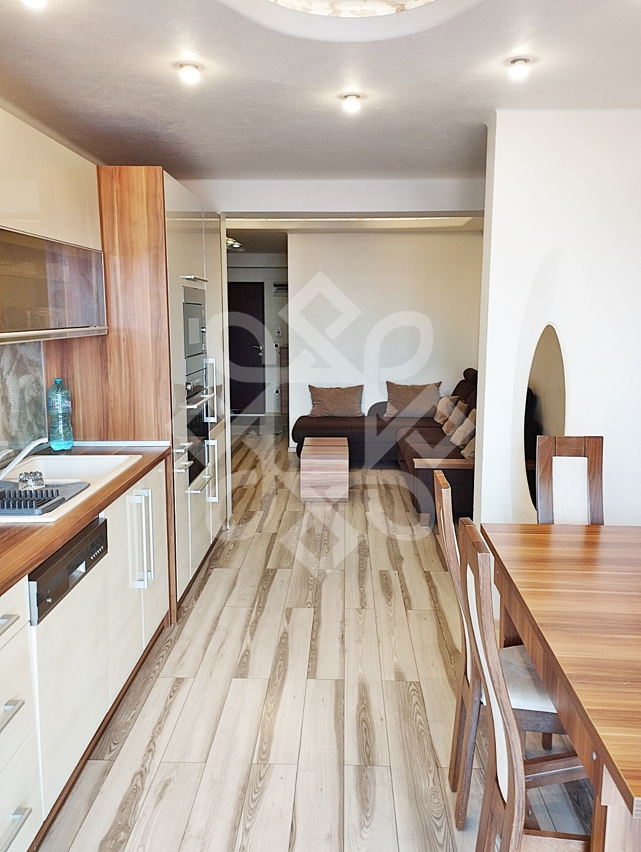 The apartment is on the 3rd floor, in a new P+6 block, thermally insulated on the outside. The house has a usable area of 79 square meters and consists of entrance hall, open-space living room with kitchen, two bedrooms, two bathrooms, open balcony.
