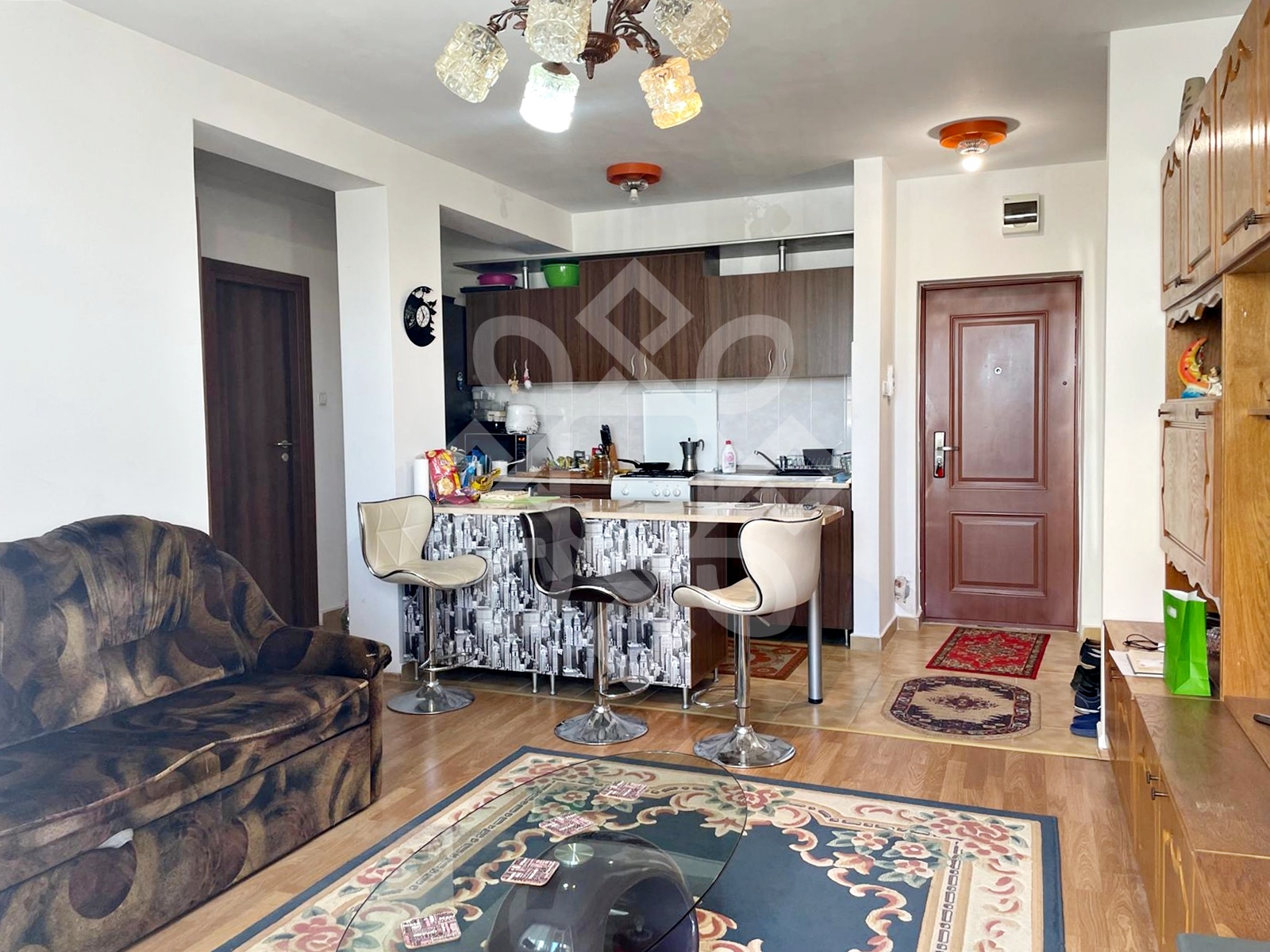 Apartamentul este situat la etajul 2/4, intr-un bloc construit in 2006 si masoara o suprafata utila de 42,8 mp. Este semidecomandat si se compune din: hol, living cu bucatarie open-space cu iesire pe un balcon in suprafata de 4,3 mp., dormitor si baie cu cada si geam de aerisire.