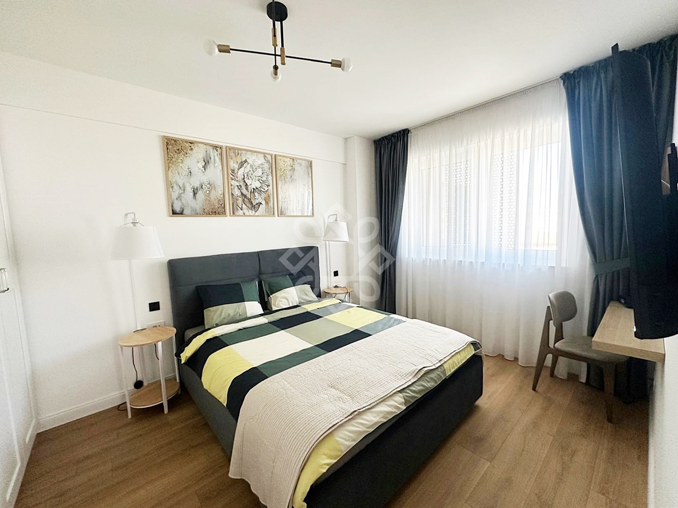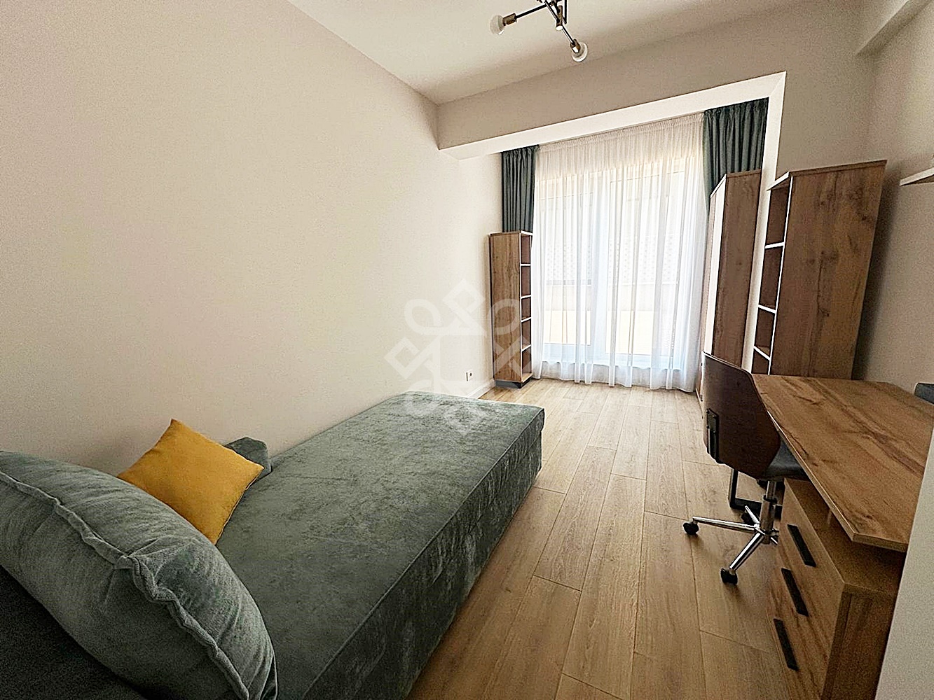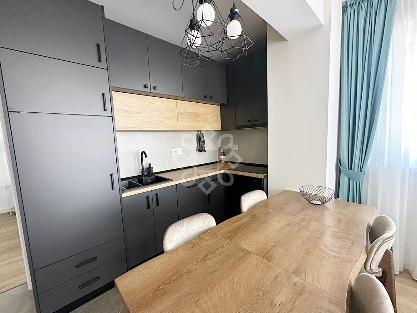 Apartamentul este luminos pe toata durata zilei. Are ferestre cu geam termopan si spatii vitrate mari. Este amenajat modern, se remarca prin functionalitate, confort, estetica placuta, maximizarea spatiului util oferit Este dotat cu mobilier si electrocasnice de calitate