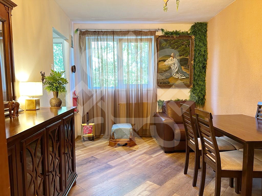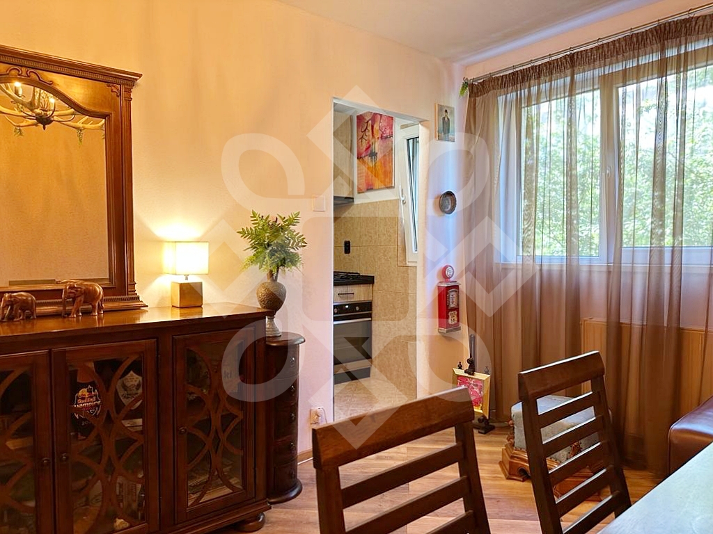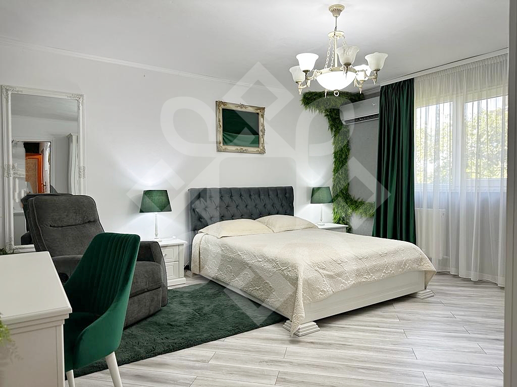 Locuinta este renovata, amenajata cu materiale premium, dotata cu parchet laminat, usi de interior din lemn reconditionate, geamuri termopan, aer conditionat, usa de siguranta. Mobilierul este o combinatie intre modern si clasic, ales cu grija pentru fiecare incapere.