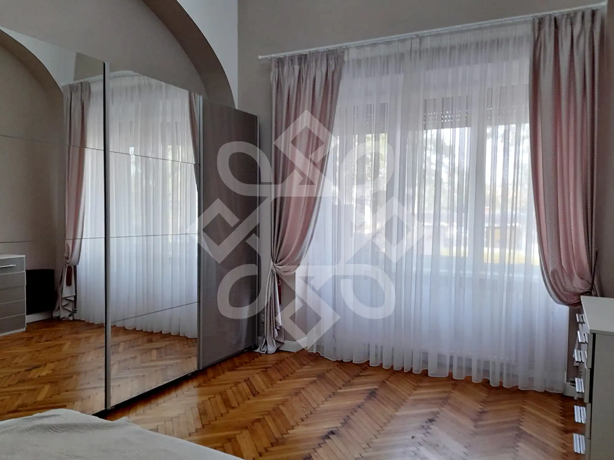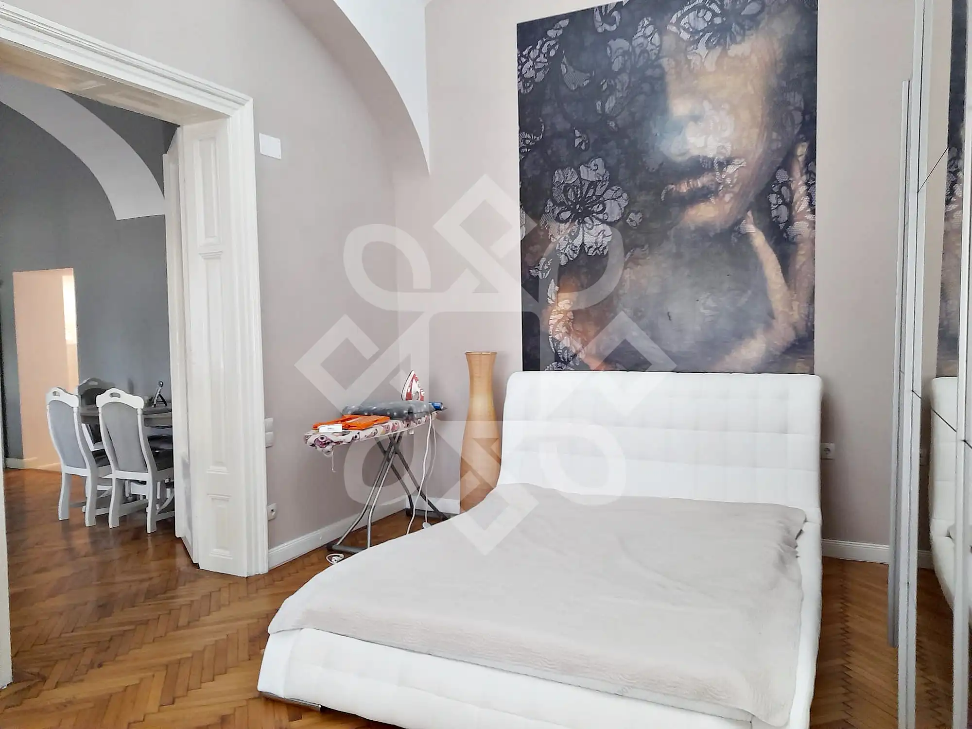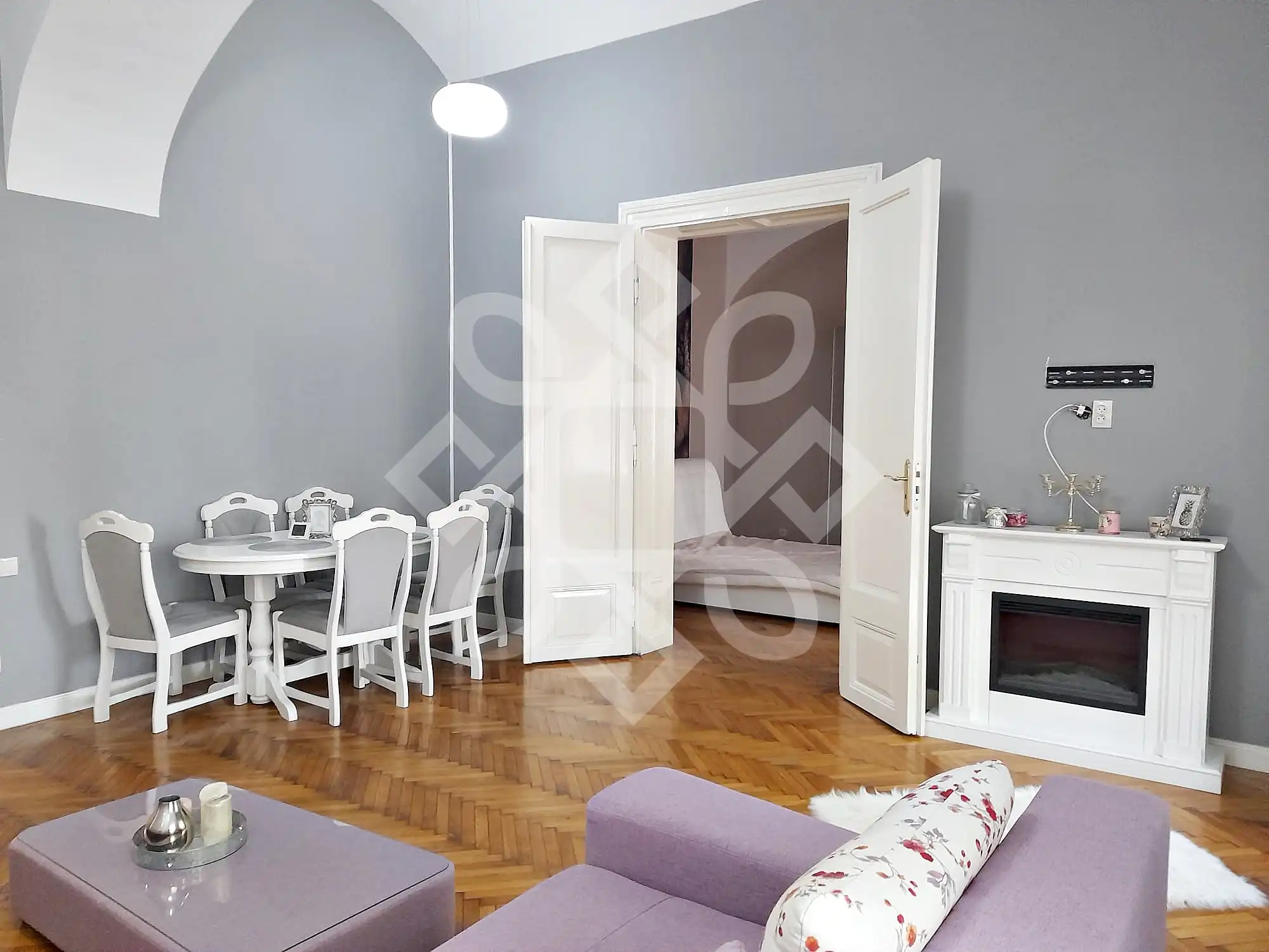 The apartment is recently renovated, modernly furnished, finished with high quality materials. It is equipped with solid wood flooring, wooden interior doors, double glazed windows, exterior blinds, fireplace, custom furniture, new appliances.