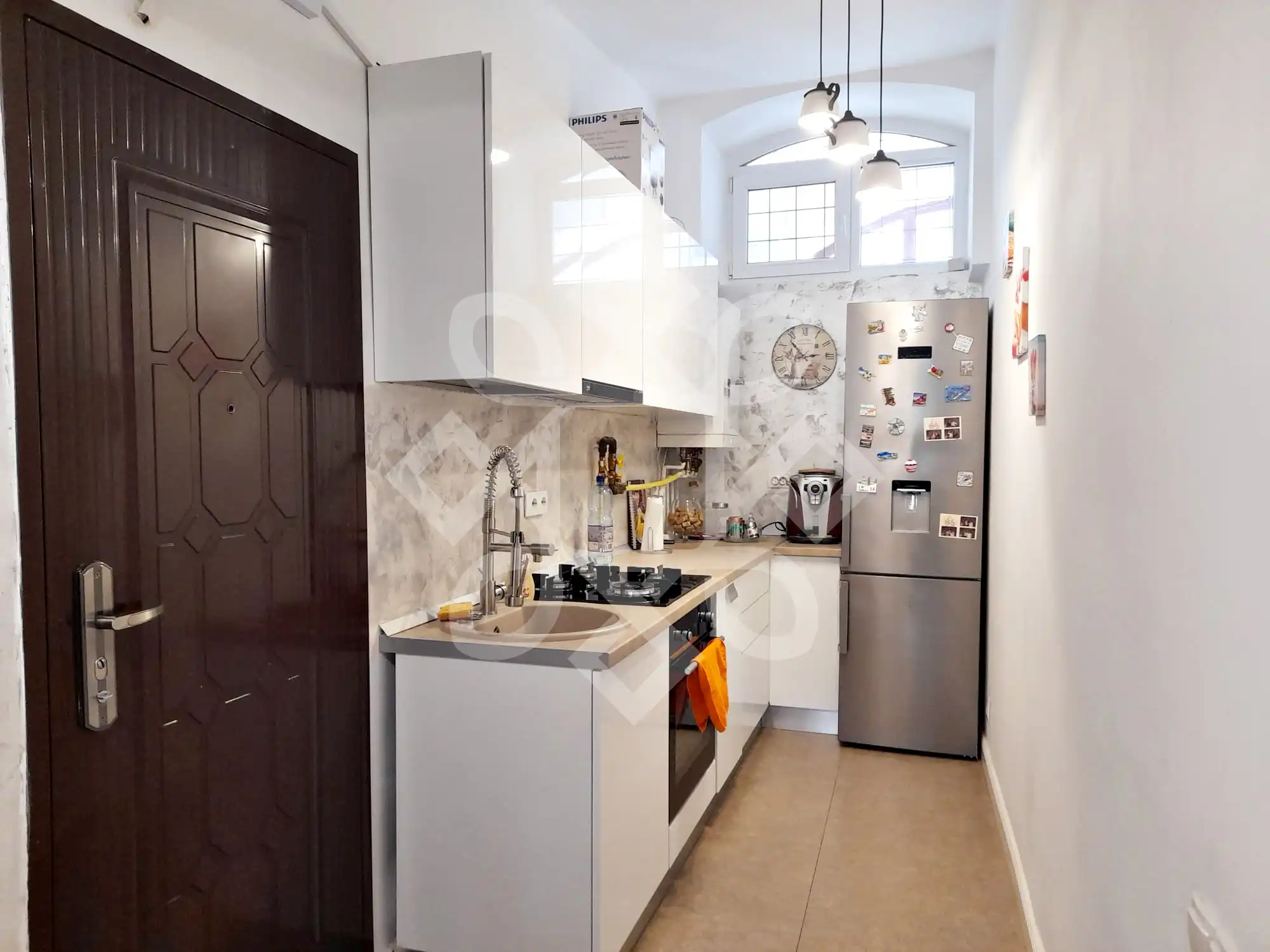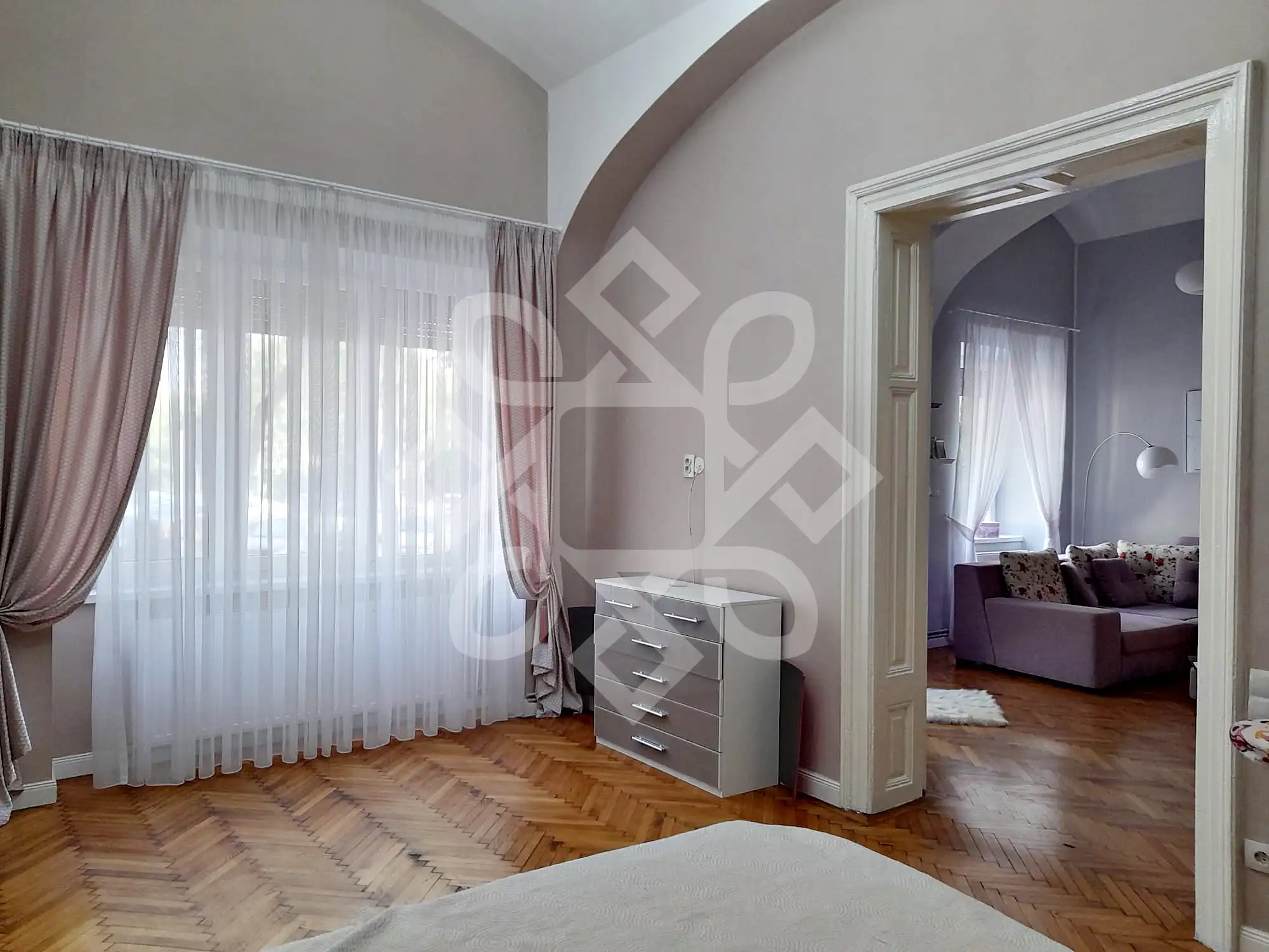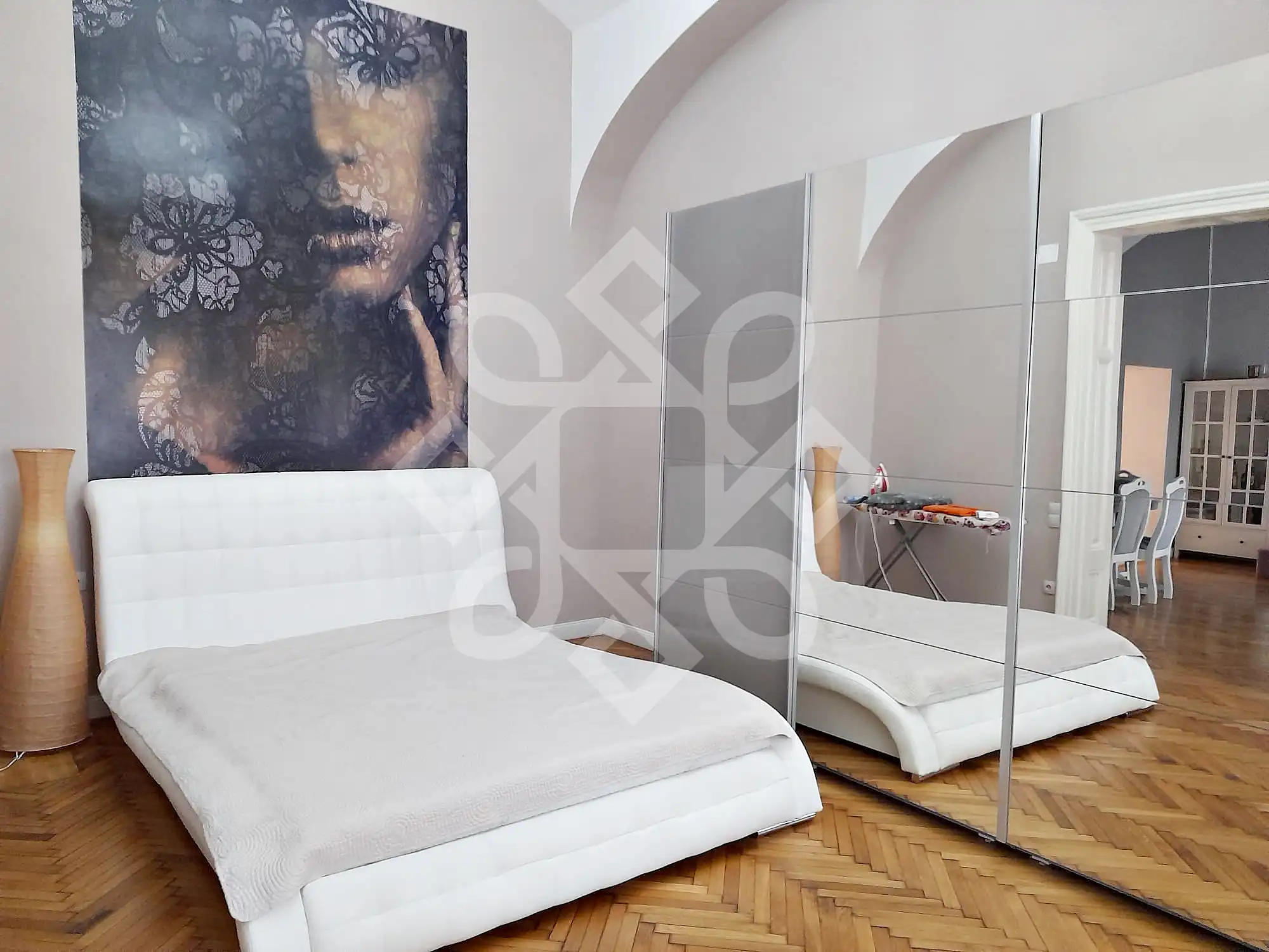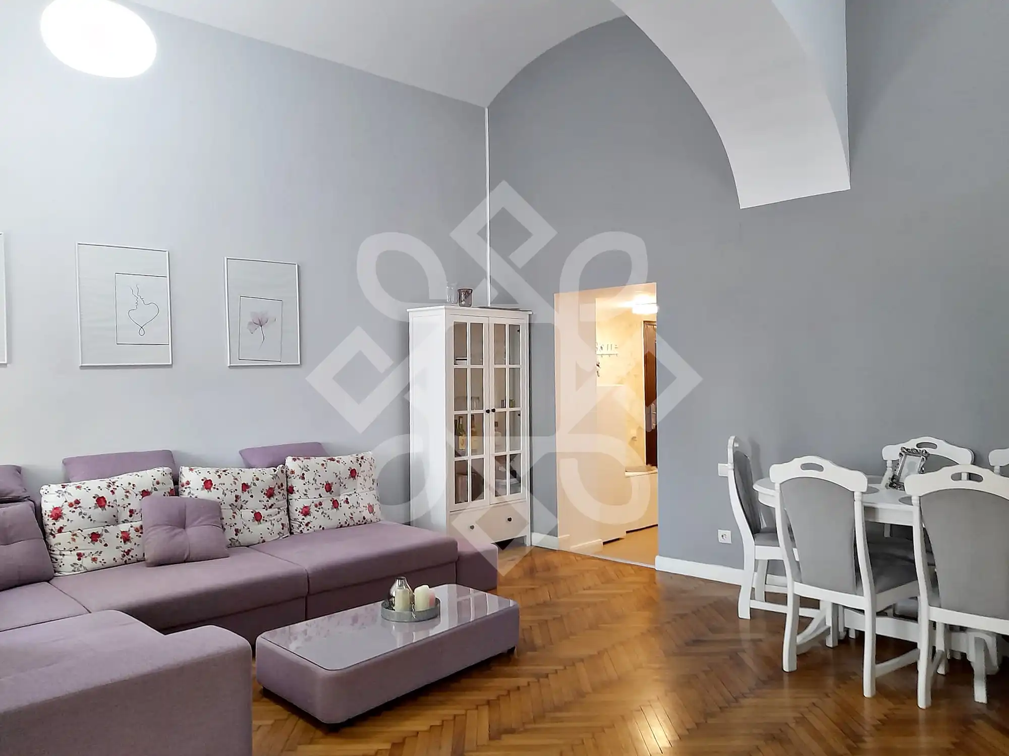 The apartment is recently renovated, modernly furnished, finished with high quality materials. It is equipped with solid wood flooring, wooden interior doors, double glazed windows, exterior blinds, fireplace, custom furniture, new appliances.