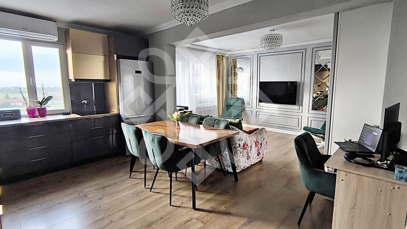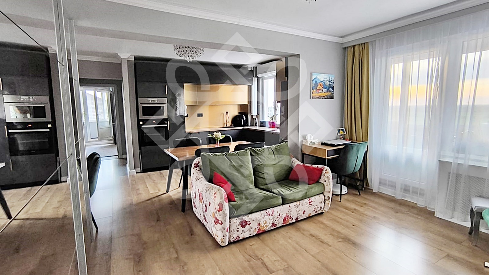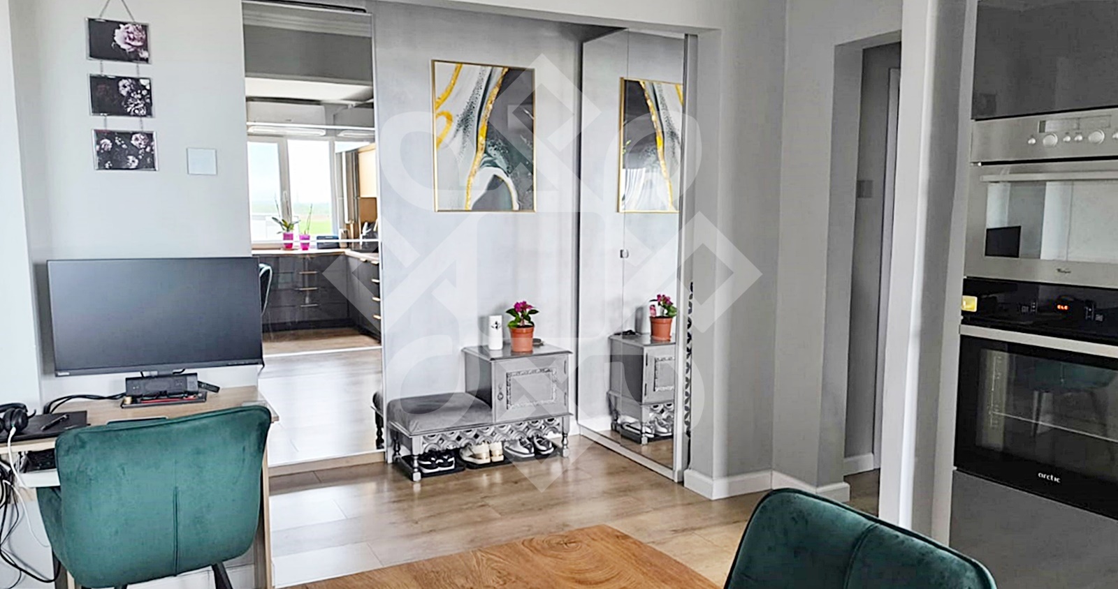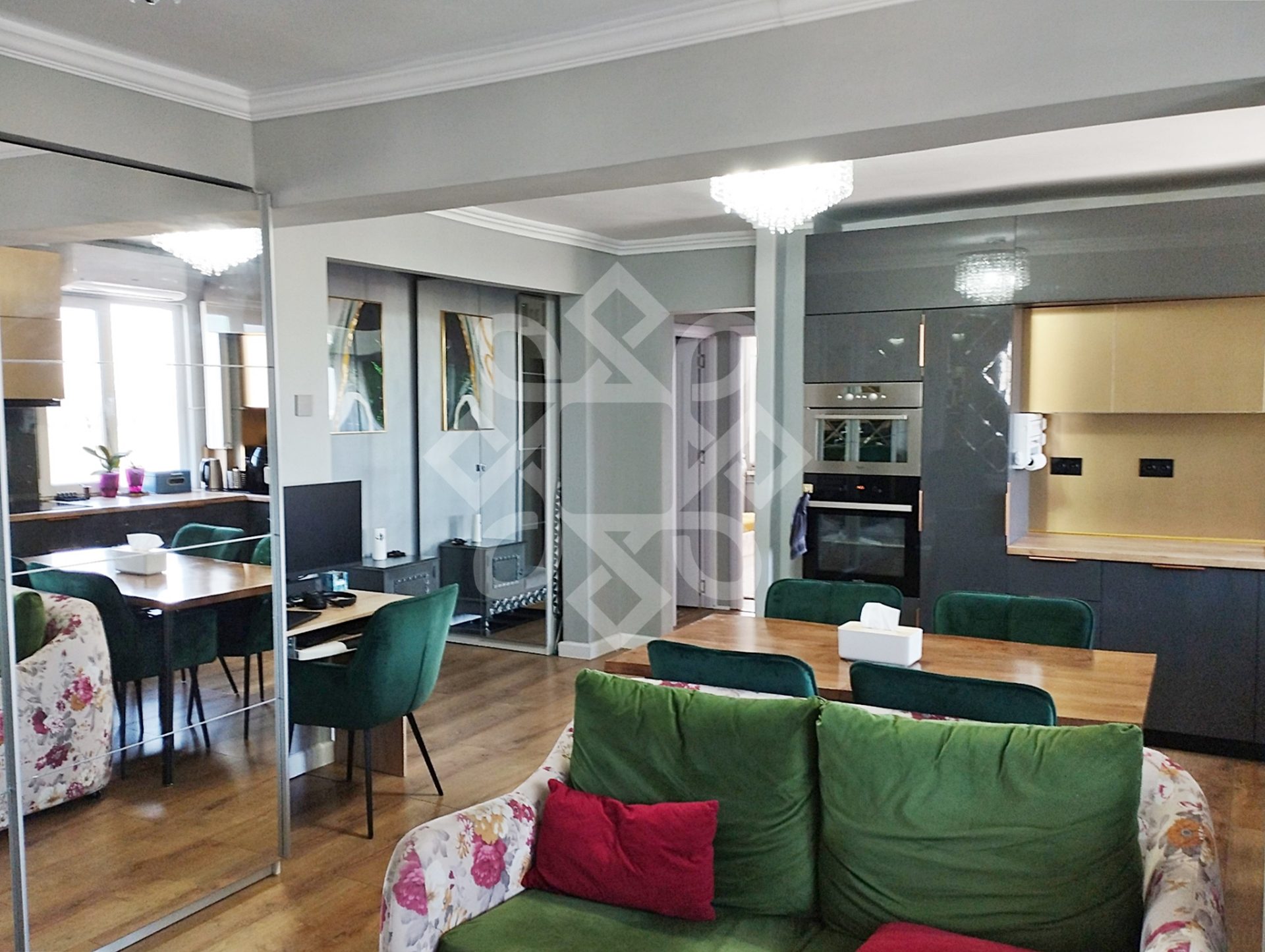 The apartment has been completely renovated, with modern finishes and all the electrical (three-phase) and sanitary installations have been changed. The home is welcoming and furnished in a modern style. It is equipped with water-resistant parquet, double glazed windows, MDF interior doors, air conditioning (18000 BTU). The apartment is sold partially furnished.
