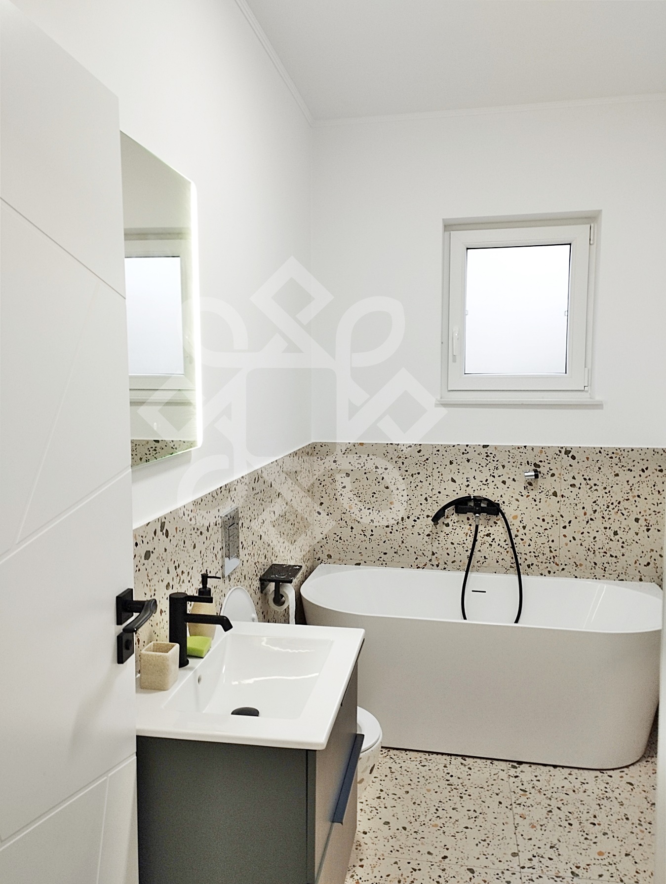 The house is decorated in a modern and minimalist style, equipped with state-of-the-art appliances such as: electric fireplace, 2 smart TVs, air conditioning, dishwasher, refrigerator, hood, electric hob, microwave oven, electric oven, washing machine, clothes dryer.