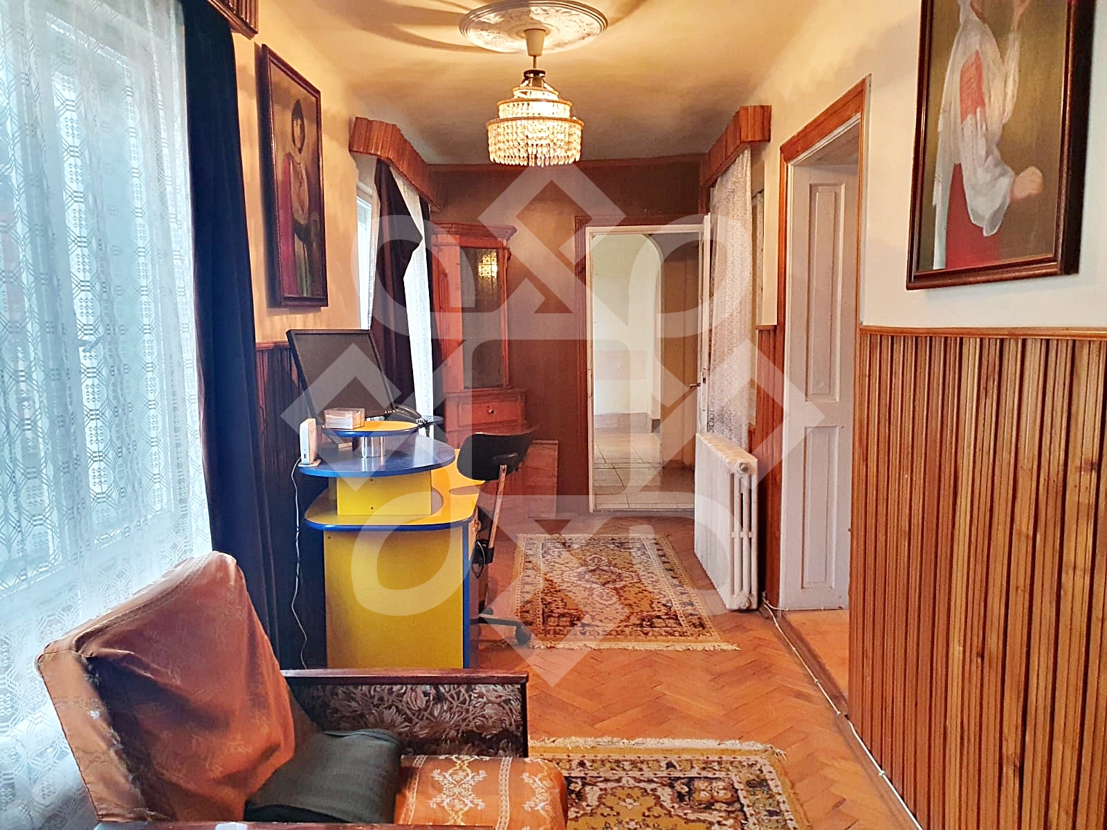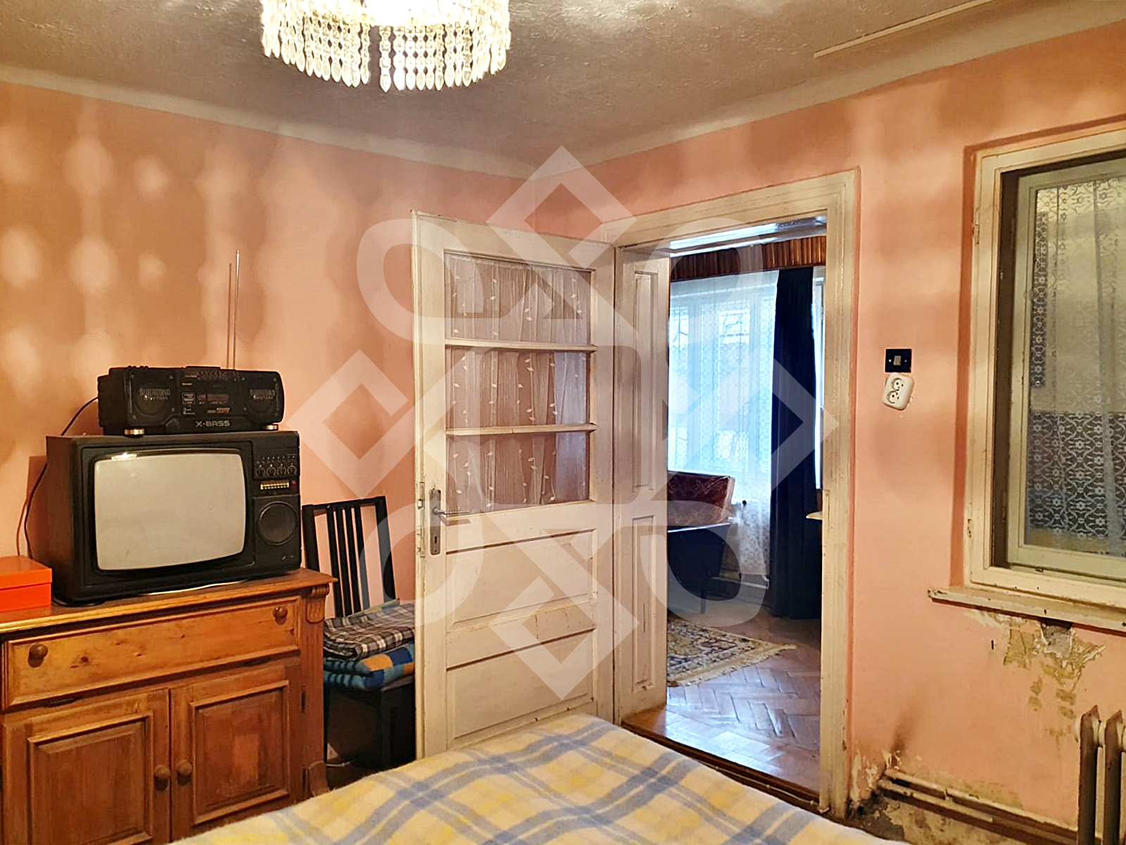 La interior, este dotata cu parchet din lemn masiv pe hol, usi de interior din lemn, ferestre duble din lemn si necesita renovare completa. Acoperisul este in stare buna, invelit cu tigla.