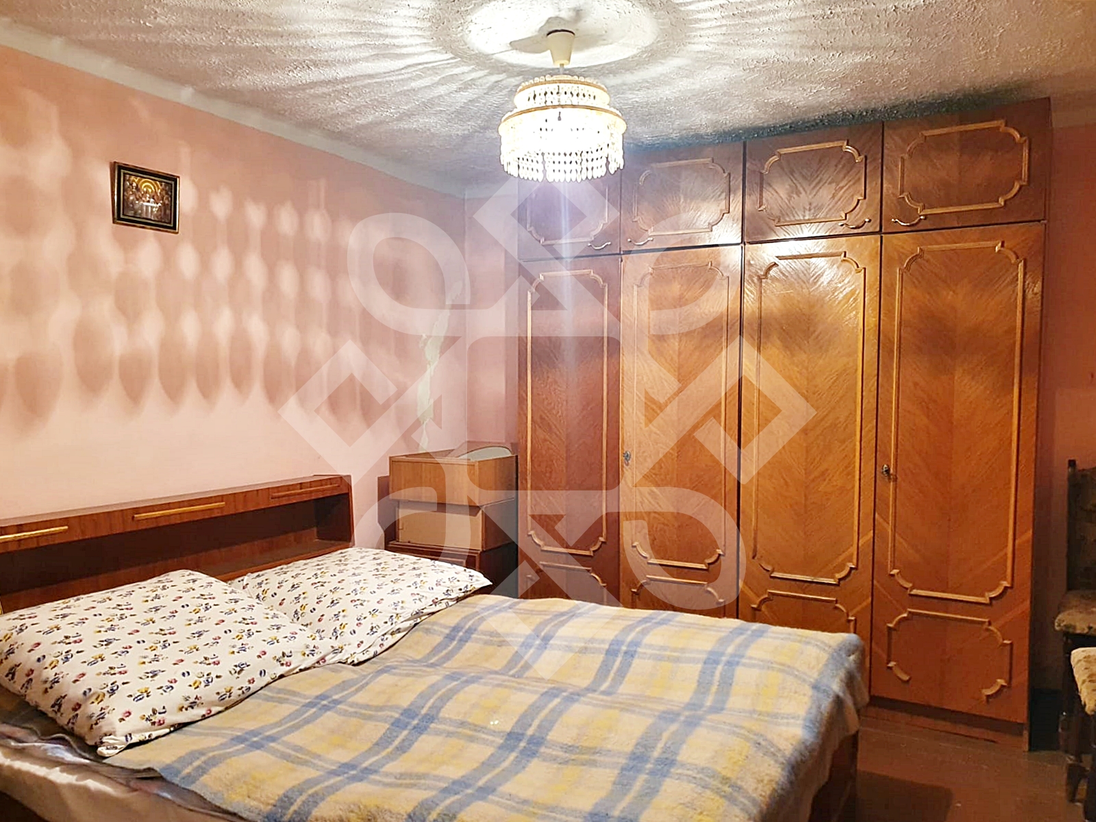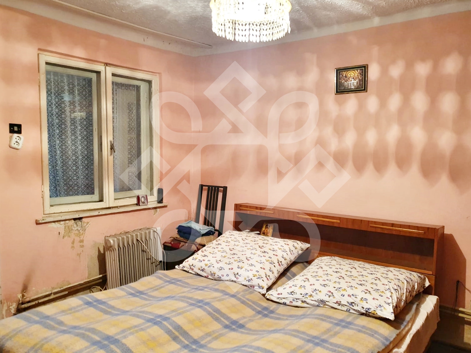 Inside, it is equipped with solid wood flooring in the hallway, wooden interior doors, double wooden windows and needs complete renovation. The roof is in good condition, covered with tiles.