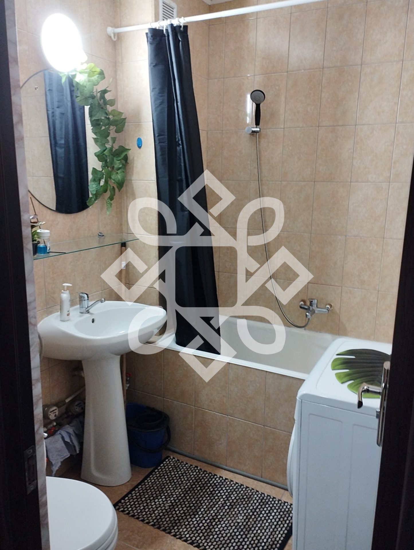 The studio is on the 9/9 floor, in a block equipped with 2 elevators. It has a usable area of 32 square meters and consists of entrance hall, bedroom, kitchen, bathroom with bathtub.